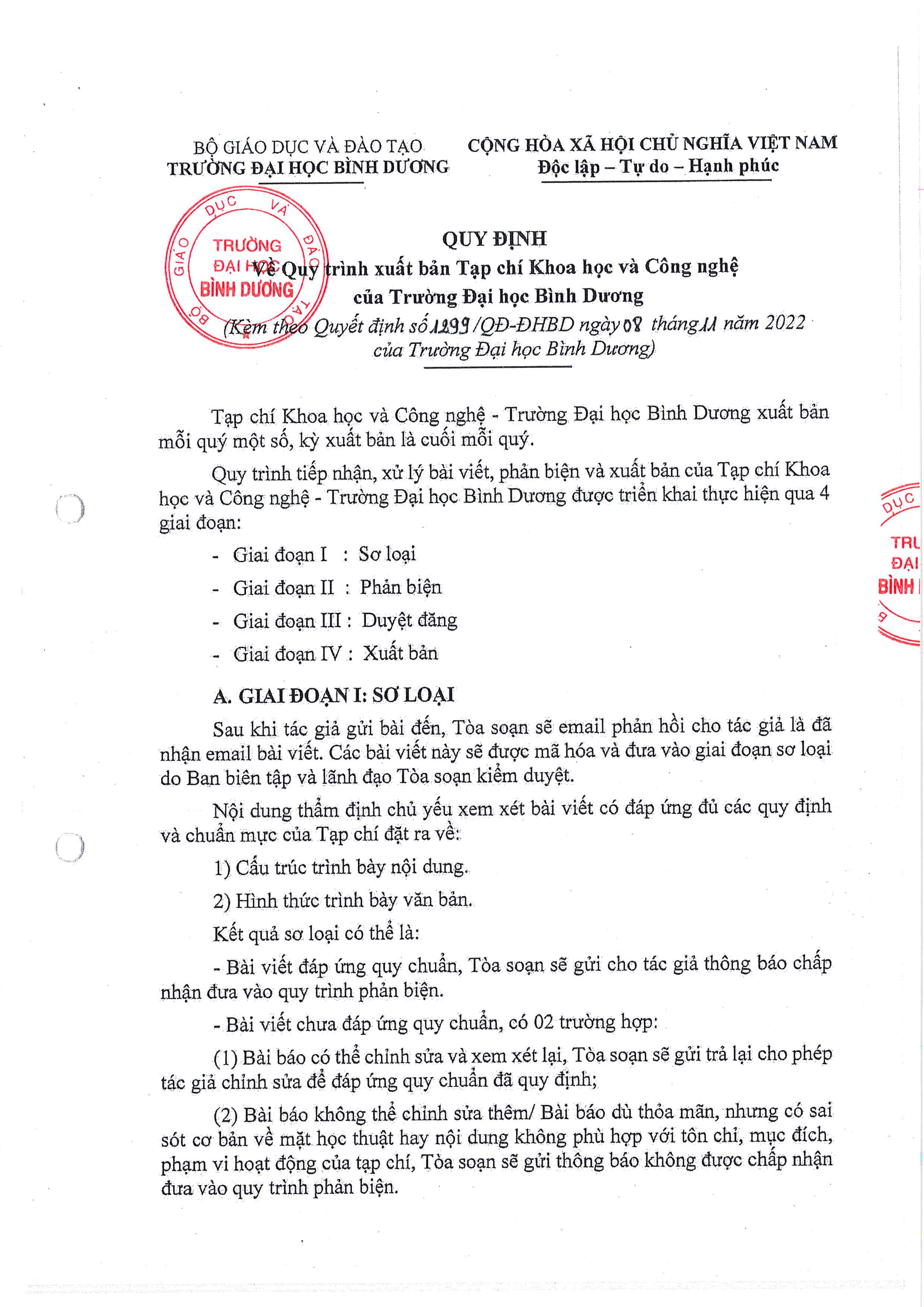 Publication Process of the Binh Duong University Journal of Science and Technology